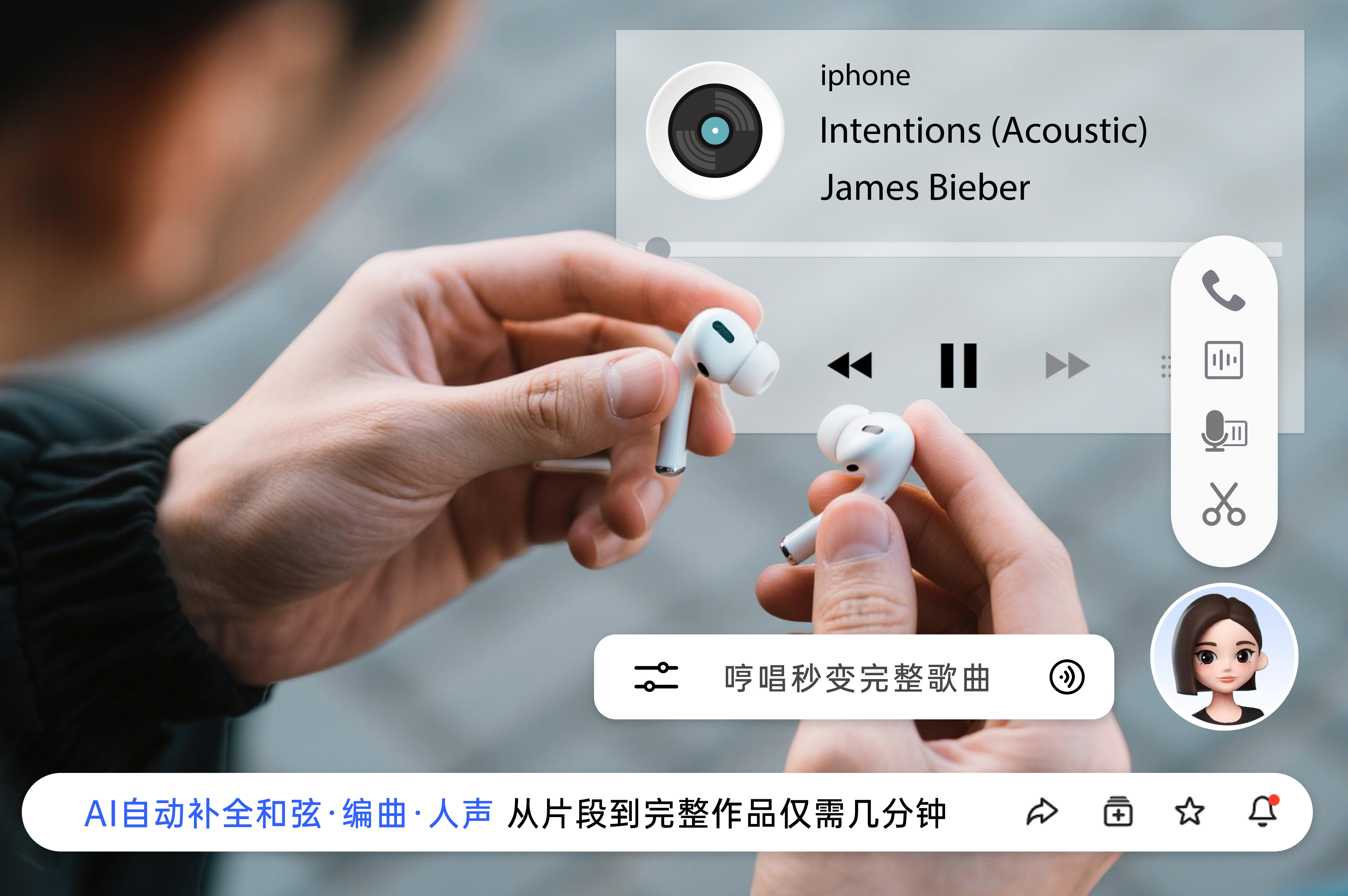 输入一段文字或描述情绪,AI瞬间将文字转化为动人旋律